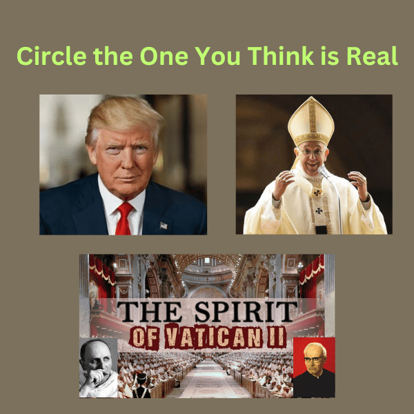 That’s where we are with Trump, who will soon, and it is almost certain, complete this vicious political circle, inflicting just as much tyranny (and more) than the leftists. Therefore, Catholics delude themselves by believing they’d obtain a lesser of two evils by supporting Donald Trump.